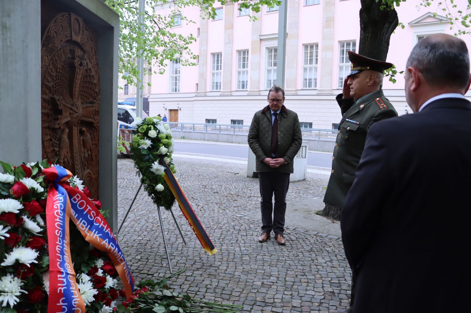ՀՀ դեսպան Վիկտոր Ենգիբարյանը, ԳԴՀ Բունդեսթագի փոխնախագահ Բոդո Ռամելովը, դեսպանության անձնակազմը, ինչպես նաև հայ համայնքի ներկայացուցիչները հարգանքի տուրք են մատուցել Հայոց ցեղասպանության զոհերի հիշատակին։